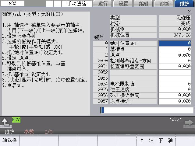 然后把絕對(duì)位置設(shè)定設(shè)定為1,基準(zhǔn)點(diǎn)也設(shè)定為1,這個(gè)軸的原點(diǎn)就設(shè)定好了。