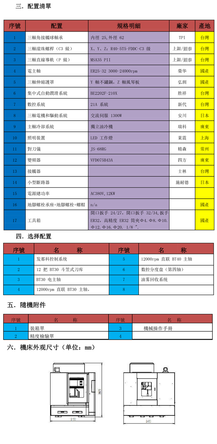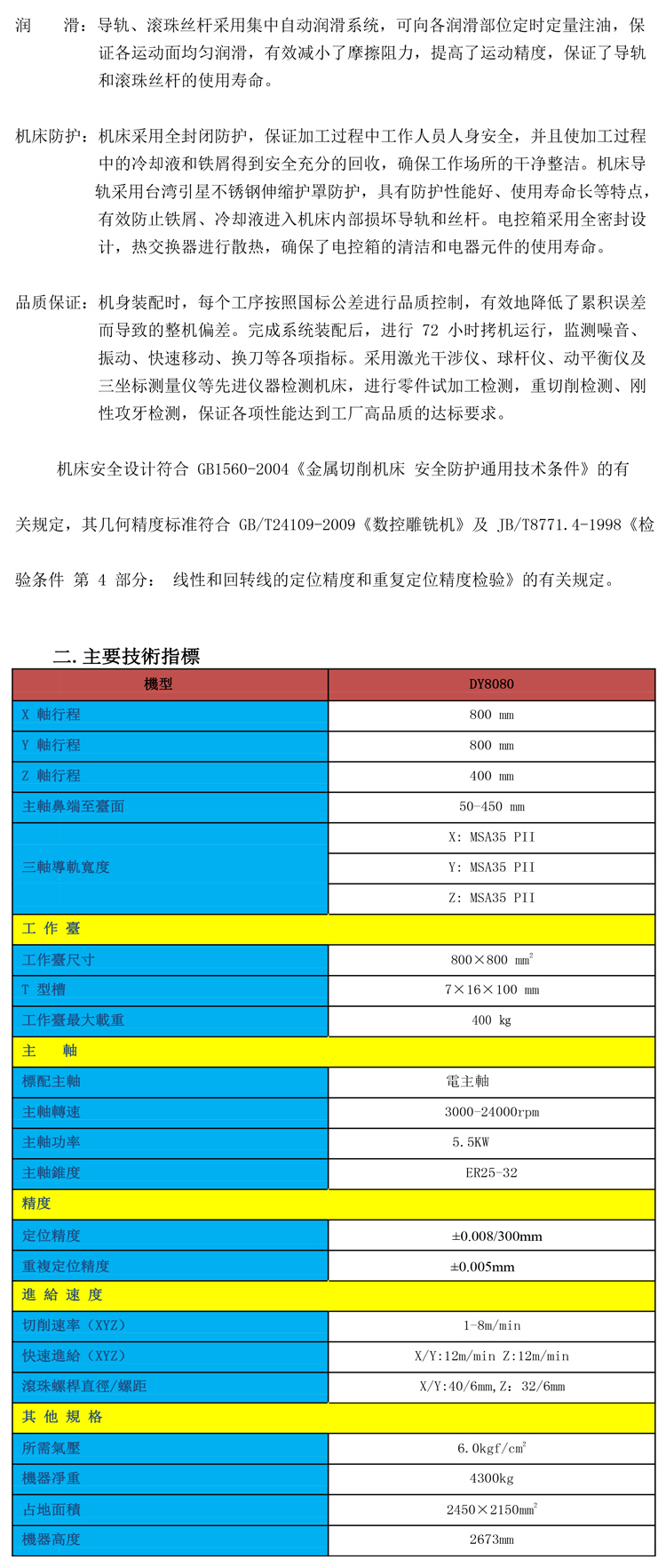 Y軸行程: 800 mm; Z軸行程: 380 mm; 主軸鼻端至臺面: 50-430 mm; 工作臺尺寸: 800×800 mm; 標(biāo)配主軸: 電主軸; 主軸轉(zhuǎn)速:3000-24000rpm;" />