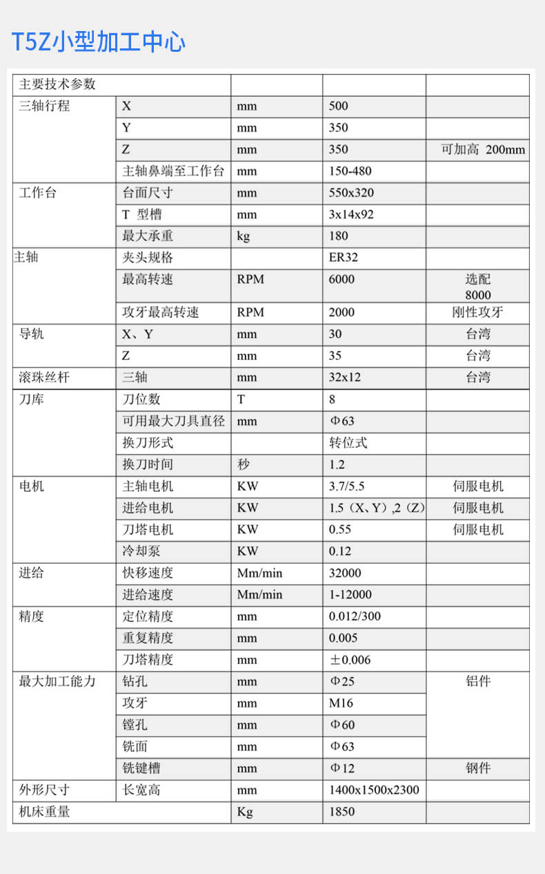 主軸轉(zhuǎn)速:6000rpm(選配8000rpm);